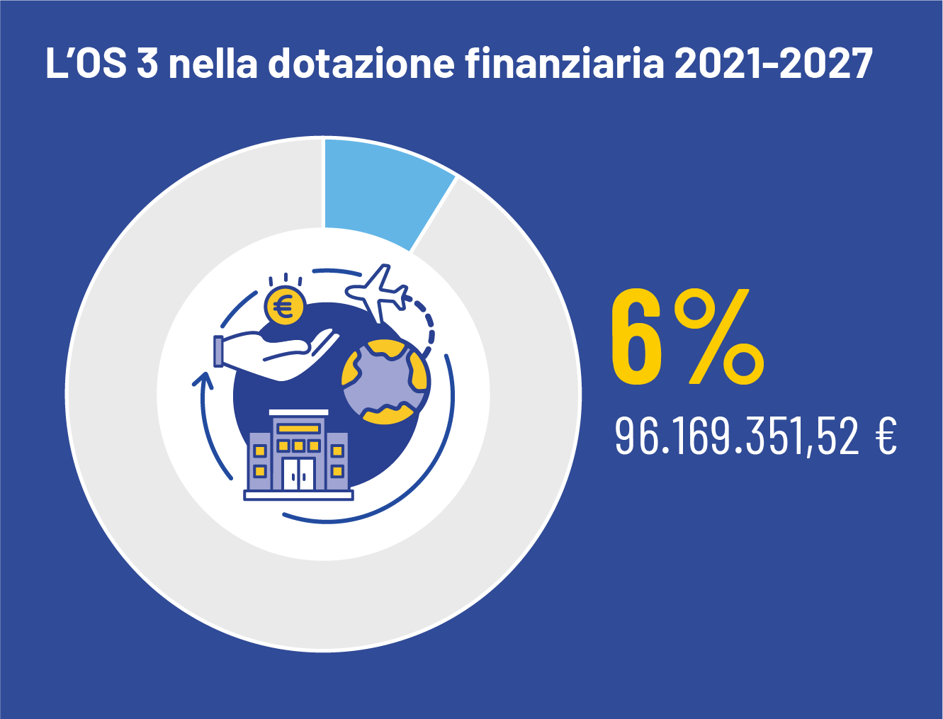 L’Obiettivo Specifico 3 può contare su una dotazione di 96.169.351,52 € pari a 6,3% della dotazione finanziaria complessiva del Fondo
